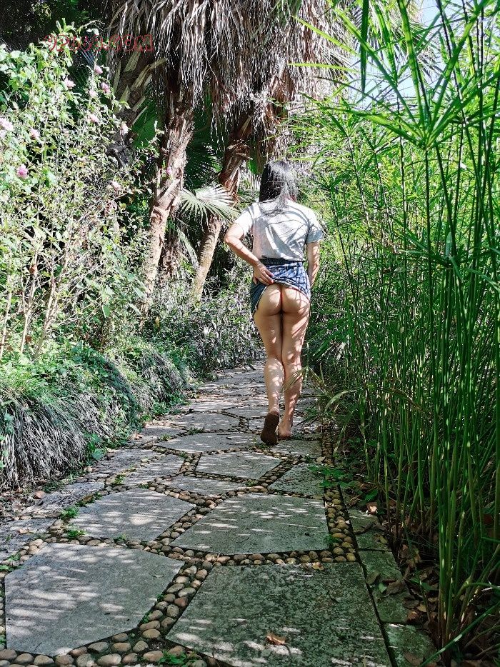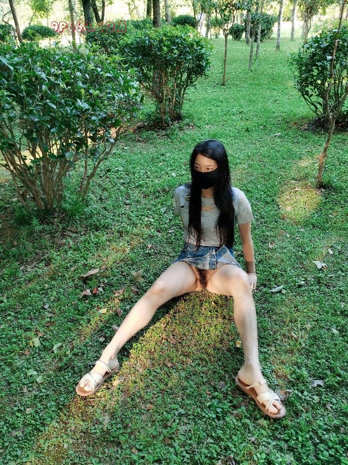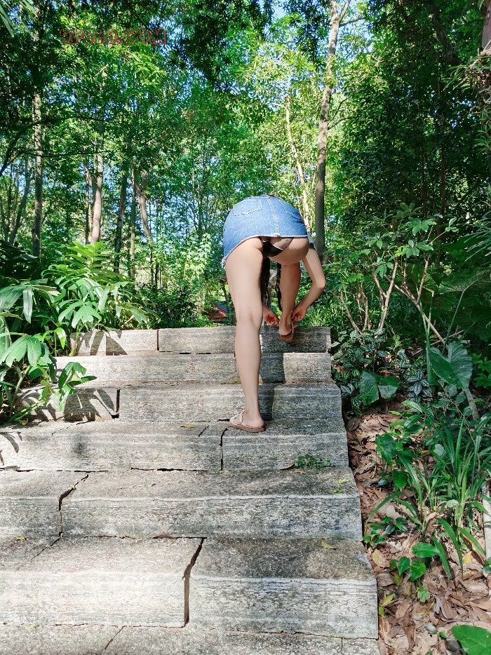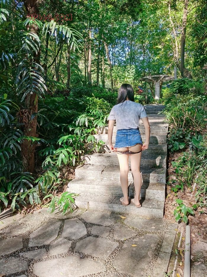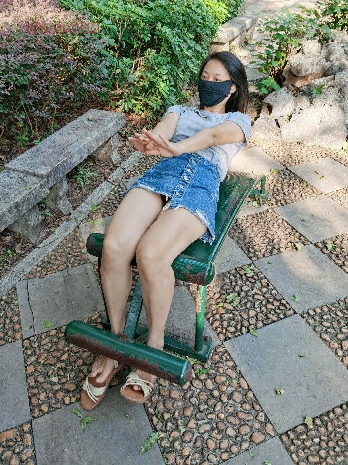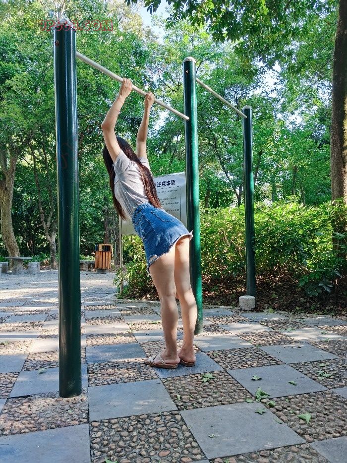想起看过的一张网图,一个女的真空穿短裙玩单杠,吊起来以后露出阴部和屁股。赶紧让老婆再次脱了内裤,来个场景重现。刚拍了几个场景,还没来得及玩单杠,过来一个大叔锻炼身体。左等右等就是不走,我们被蚊子叮的实在受不了,只好妥协先走人。