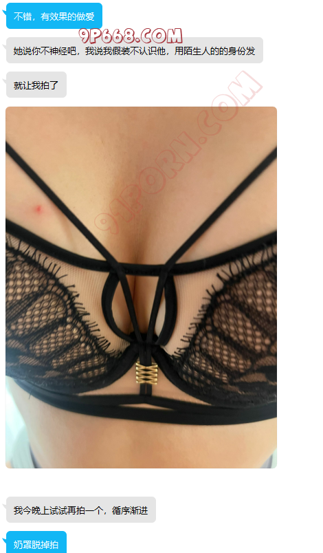 昨晚十点左右,有个绿帽加我,大家可以看聊天截图,加我的时间晚上九点多,因为喝酒了,没聊几句。今天白天简单几句指点,下午发来重要进展,详细看聊天截图。这位绿,是聪明人,一点就透,知道怎么配合。而且执行力比较强,所以进展比较快,相信要不了多久,会满足他淫妻的欲望。